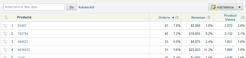 - She can report a list of products with these metrics. She can order them by any of the metrics to see which ones are looked at most often versus actually purchased.