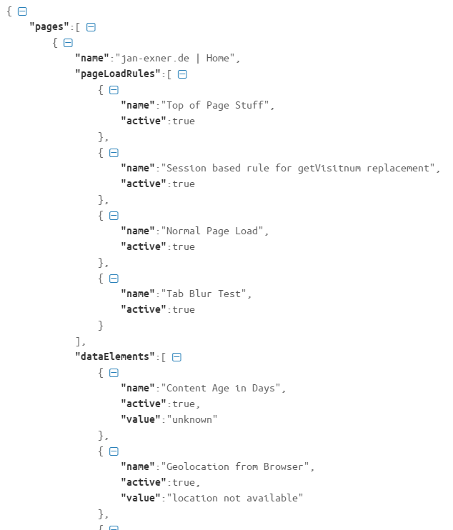The idea behind this tool is to crawl an existing list of URLs (your site, for example), record the values of all Data Elements and which Page Load Rules fire on the pages. The result is a JSON file which your friendly marketer can tailor. You then use the JSON file in an automated test whenever you want, making sure you don’t pull the ground from under her feet when you make changes.