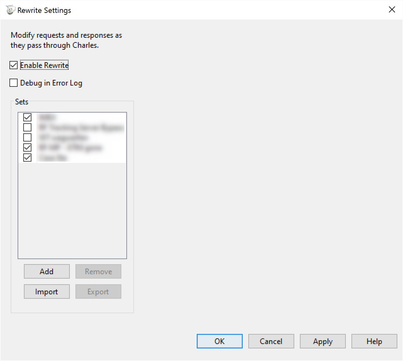 And the absolute kicker: you can export sets, hand them to colleagues or clients, and they can import them into their version of Charles and immediately start using them!