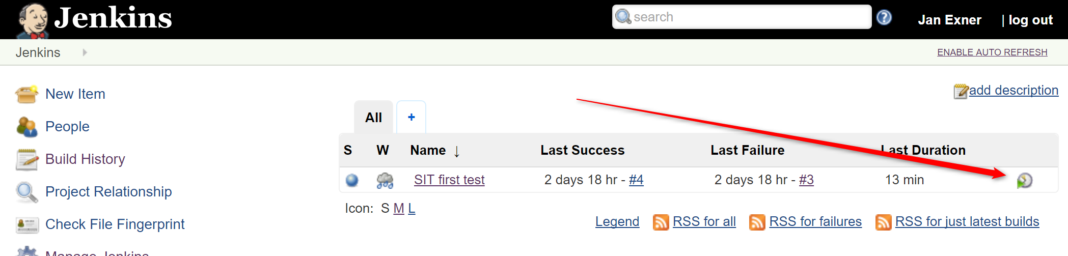 Job status (yellow = unstable!) on Jenkins Dashboard