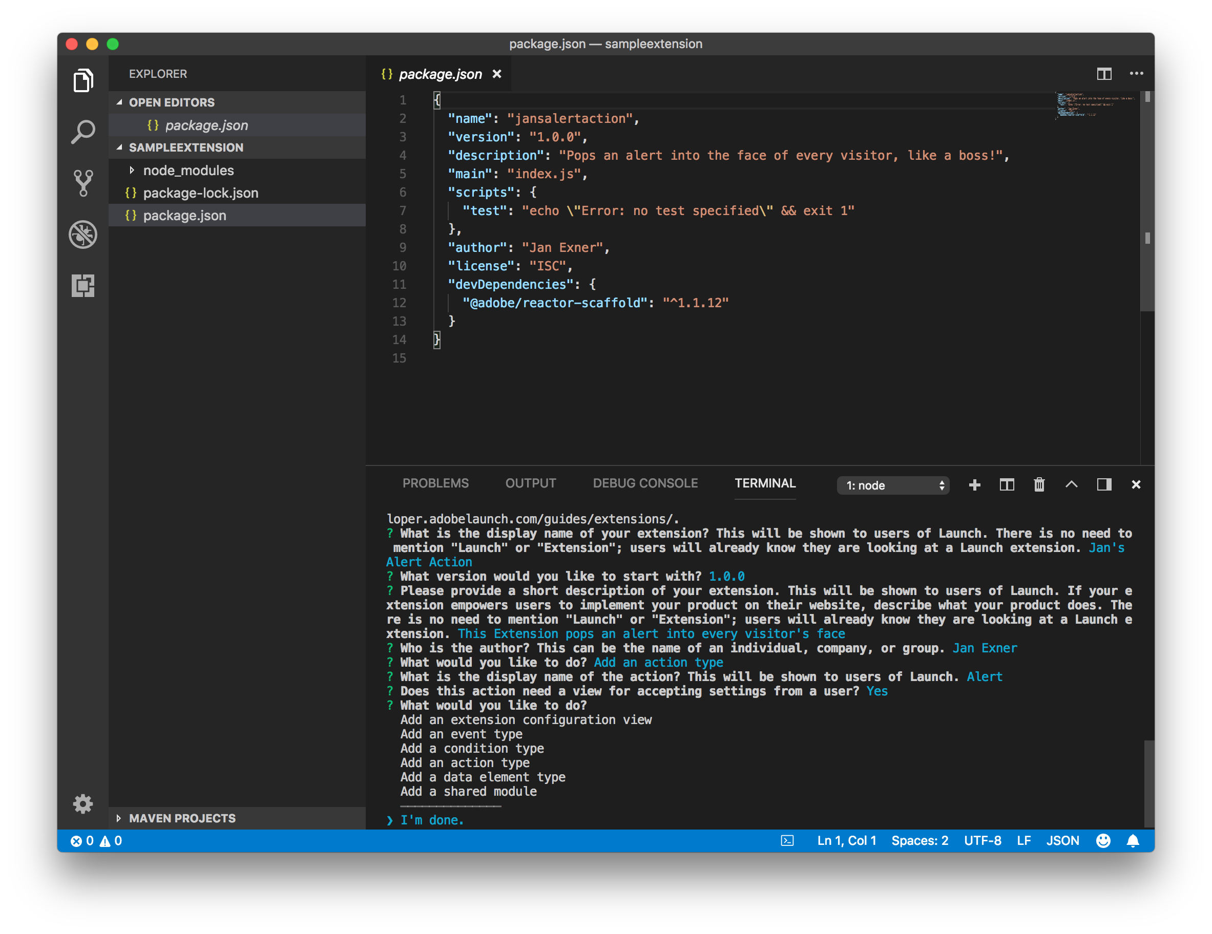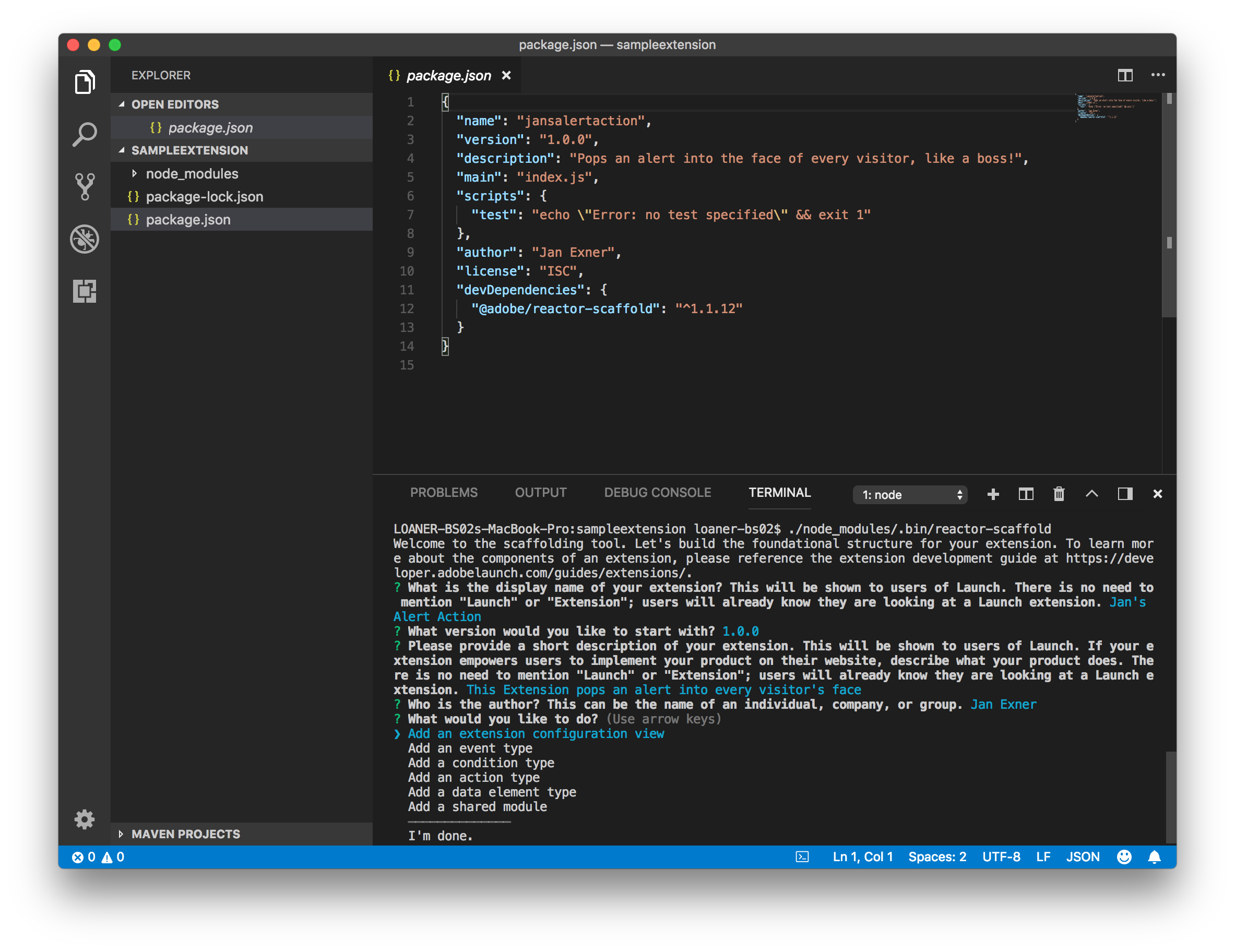 9. Type npm install @adobe/reactor-scaffold --save-dev into the command line