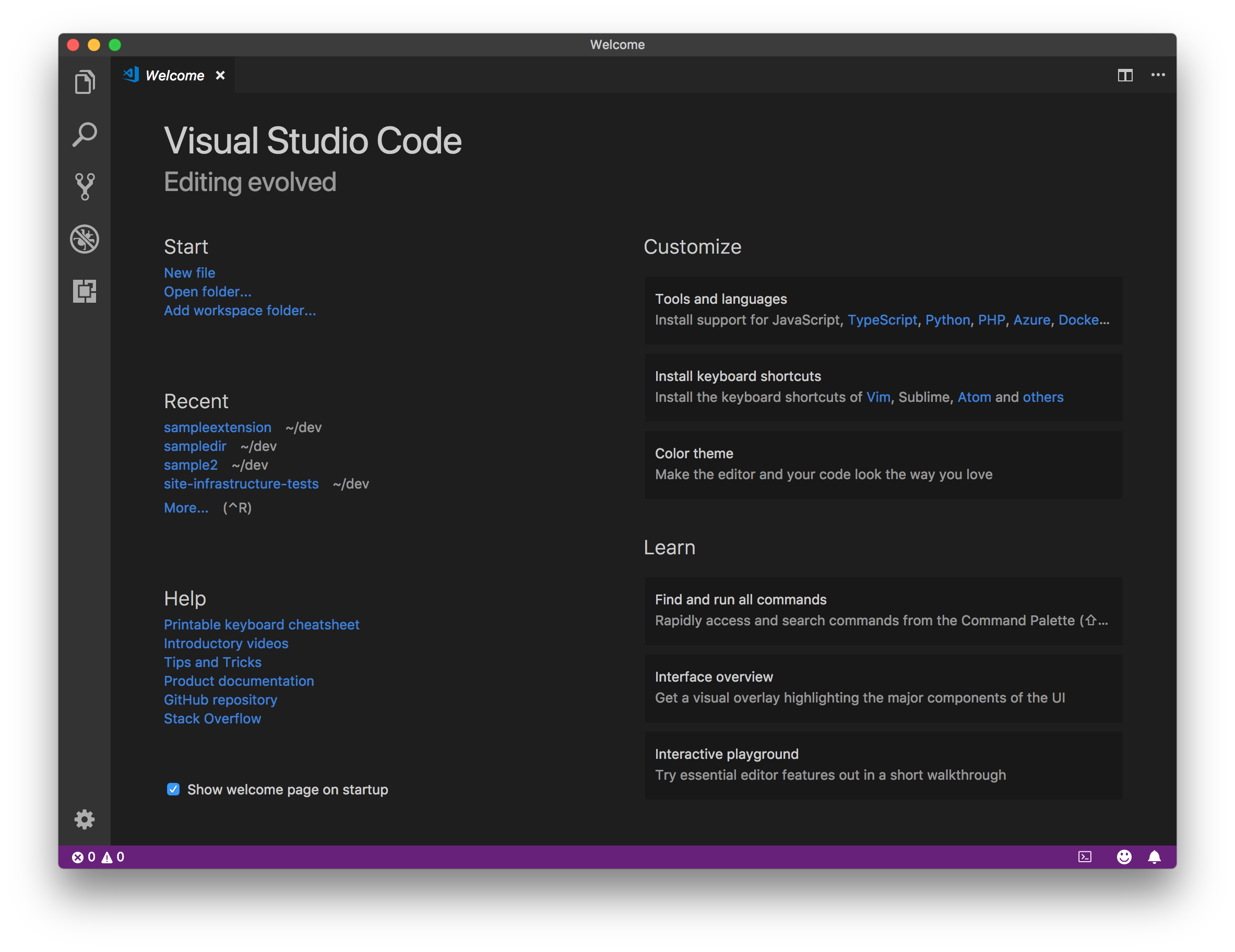 Start by installing Visual Studio Code and npm, both straight-forward installers on Macs.