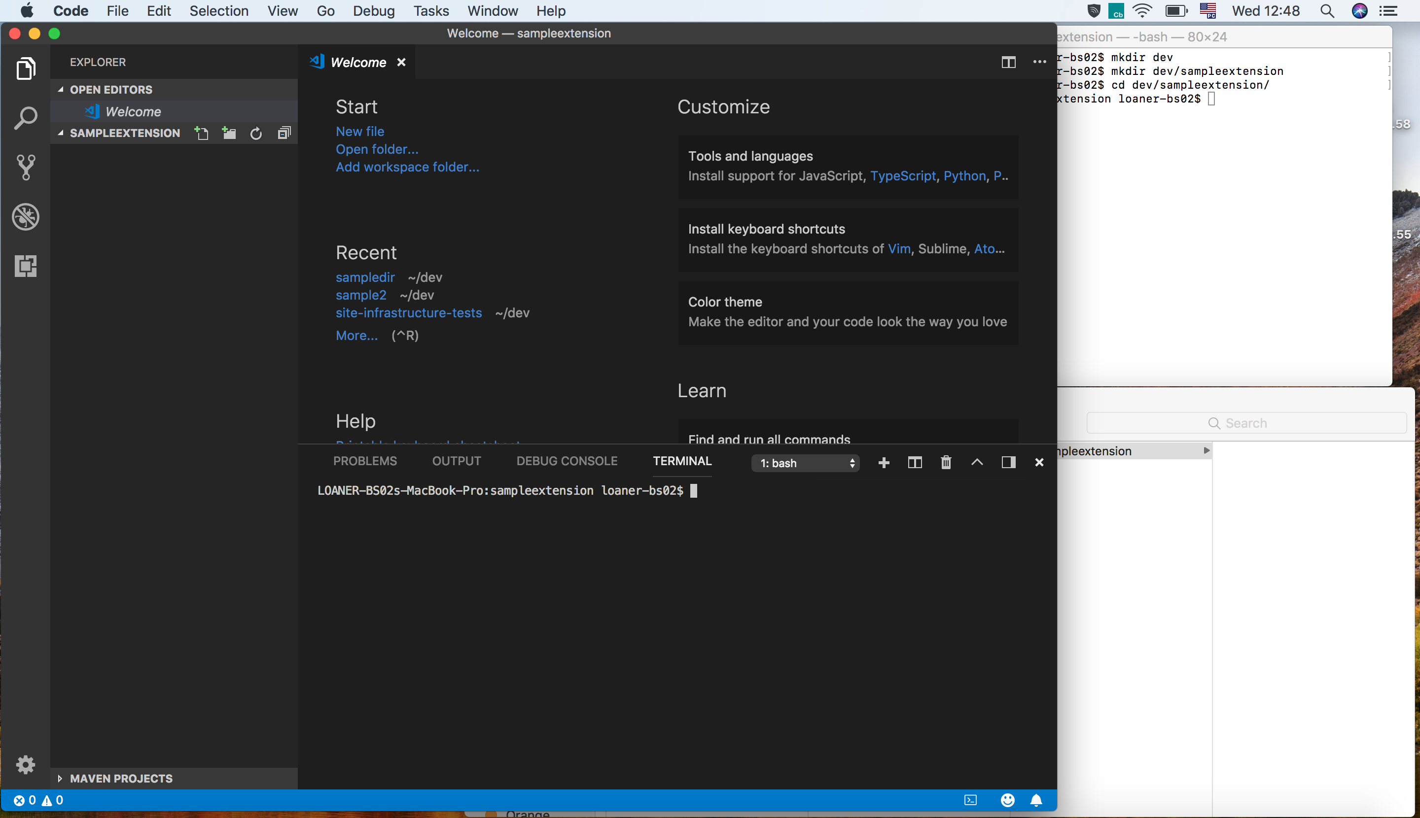 mkdir dev mkdir dev/sampleextension cd dev/sampleextension